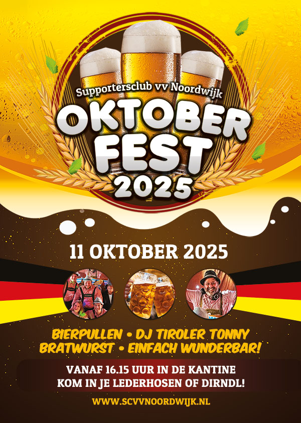 Met bierpullen, bratwurst en de knallers van DJ Tiroler Tonny. Trek je lederhosen of dirndl aan en vier met ons mee in echte Beierse sferen. Noteer het in je agenda: 11 oktober = Oktoberfest bij Noordwijk! Tot dan!